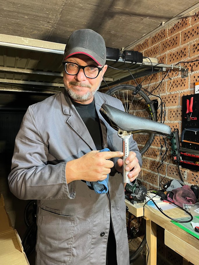 So kam es, dass also Wartung und Optimierung eines sehr geschundenen Rades anstanden! Was haben wir da nicht an Horror erlebt und gefunden! Angefangen, bei einem Sattel, der wohl vor langer Zeit in einem Sturz b´gebrochen war und irgendwie zusammengedängelt wurde. Ein Tretlager voll mit Sägespähnen, damit man das Mahlen der Lager nicht gehört hat. Kurz gesagt… Jeder französische Pfusch, der ein Stahlrennrad noch irgendwie auf der Straße halten konnte, wurde am Canelli lieblos ausgeführt und stand nun in der Werkstatt.